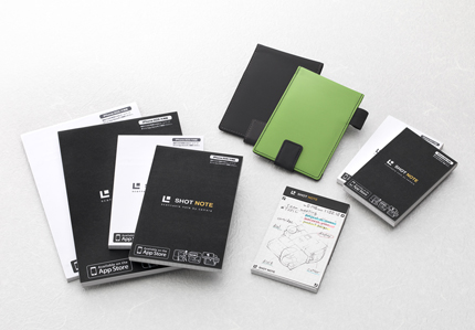 取り込んだノートはメールで送ることができ、メモの整理・活用をより簡単に行うことができます。また、「Evernote」に投稿して保存することも可能です。ノートのサイズはS・M・Lの3種、表紙のカラーは白・黒の2色をご用意いたしました。同時発売のショットノートSサイズ専用カバーは、緑・黒の2色で、ショットノートSサイズ1冊が付属しています。