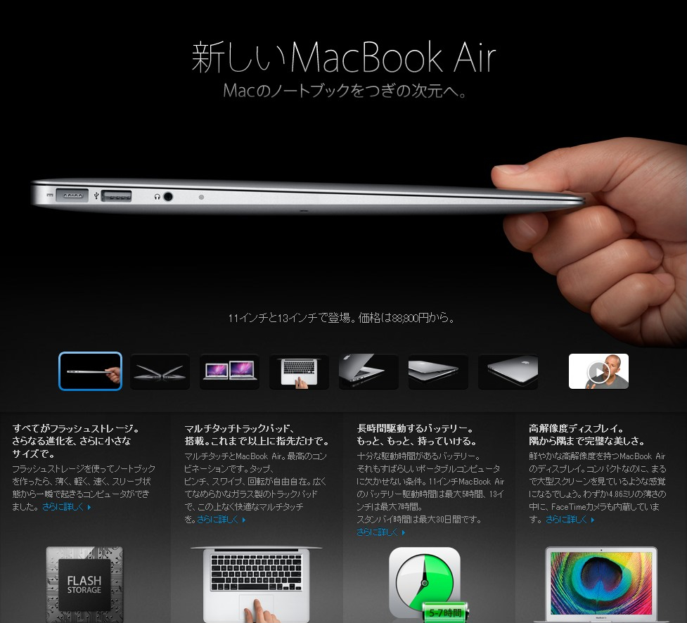 話題のMacbook Air 88,800円かー、イイ値段だー